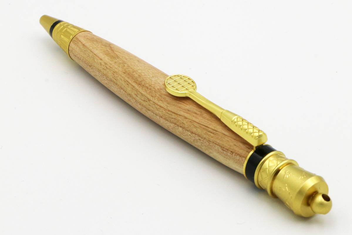 Die Spitze ist ein Federball, der Clip ein Schläger und die Drehkappe ziegt Spielstellungen.
